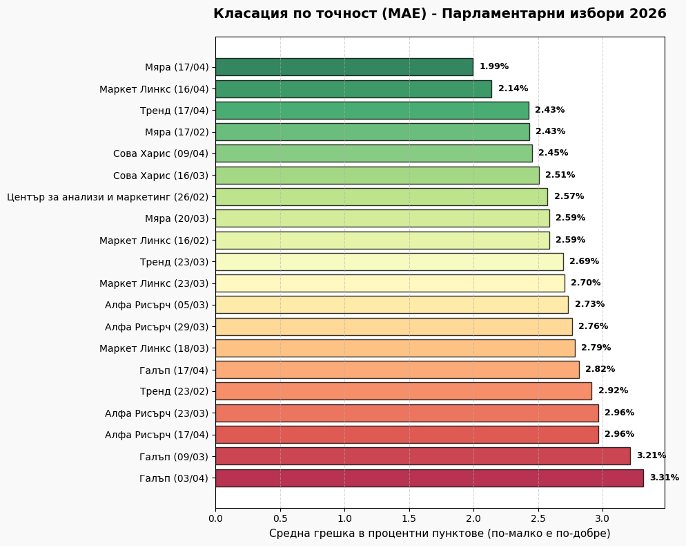 # plt.text(0.5, 0.88, 'Анализ на социологическата точност: Избори 2026', ha='center', fontsize=24, fontweight='bold', color='#003366')