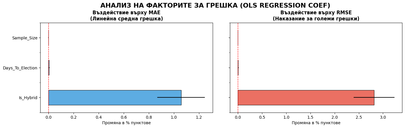 # ax1.text(0.5, 1.02, 'Как факторите променят линейната грешка (%)', transform=ax1.transAxes, ha='center', fontsize=9, color='#555')